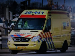Rond 09:30 uur gaat zuster eens bellen waar de ambulance blijft. Om 09:40 uur is de ambulance er. Op de brandcard en naar beneden. Rond 09:50 uur in de ambulance 20-244 en op naar Oosterhout.